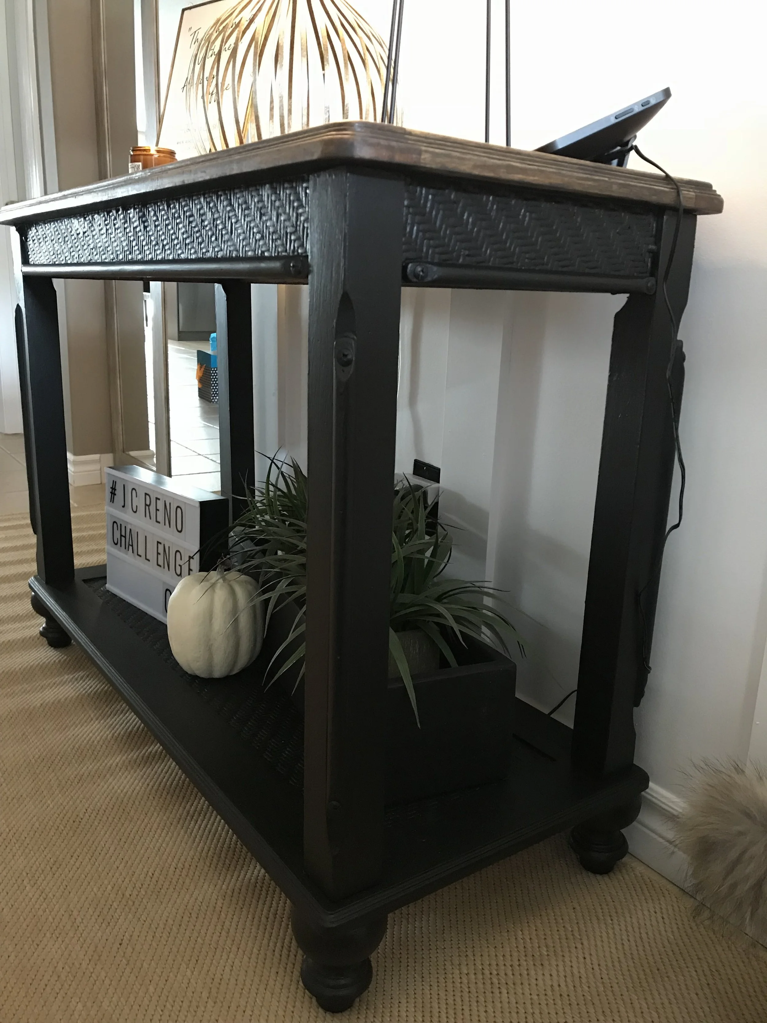 After I stripped the top, I cleaned it with TSP and gave the base a coat of Ultra Grip just to be safe. It then had two coats of Fusion Mineral Paint in “Coal Black” and on the top I used their Stain and Finishing Oil in Cappucino. Isn’t it absolutely gorgeous? It’s one of my favourite pieces I’ve made over to date. (All of the products are linked above!)