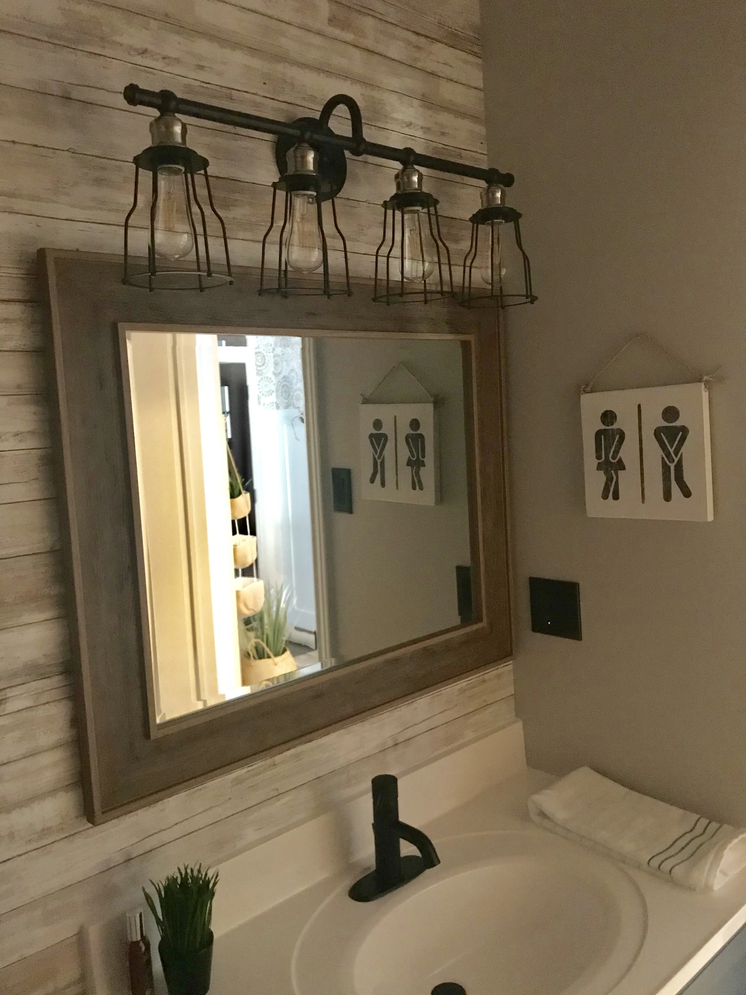 The new mirror and hand towels are Winners finds that I purchased it with a gift card I got for my birthday! The bath mat is from Ikea and the cute new signs? I made them myself with leftover supplies in the basement and my Cricut!. All of the other finishing touches were from shopping my own home, my most favourite thing to do.