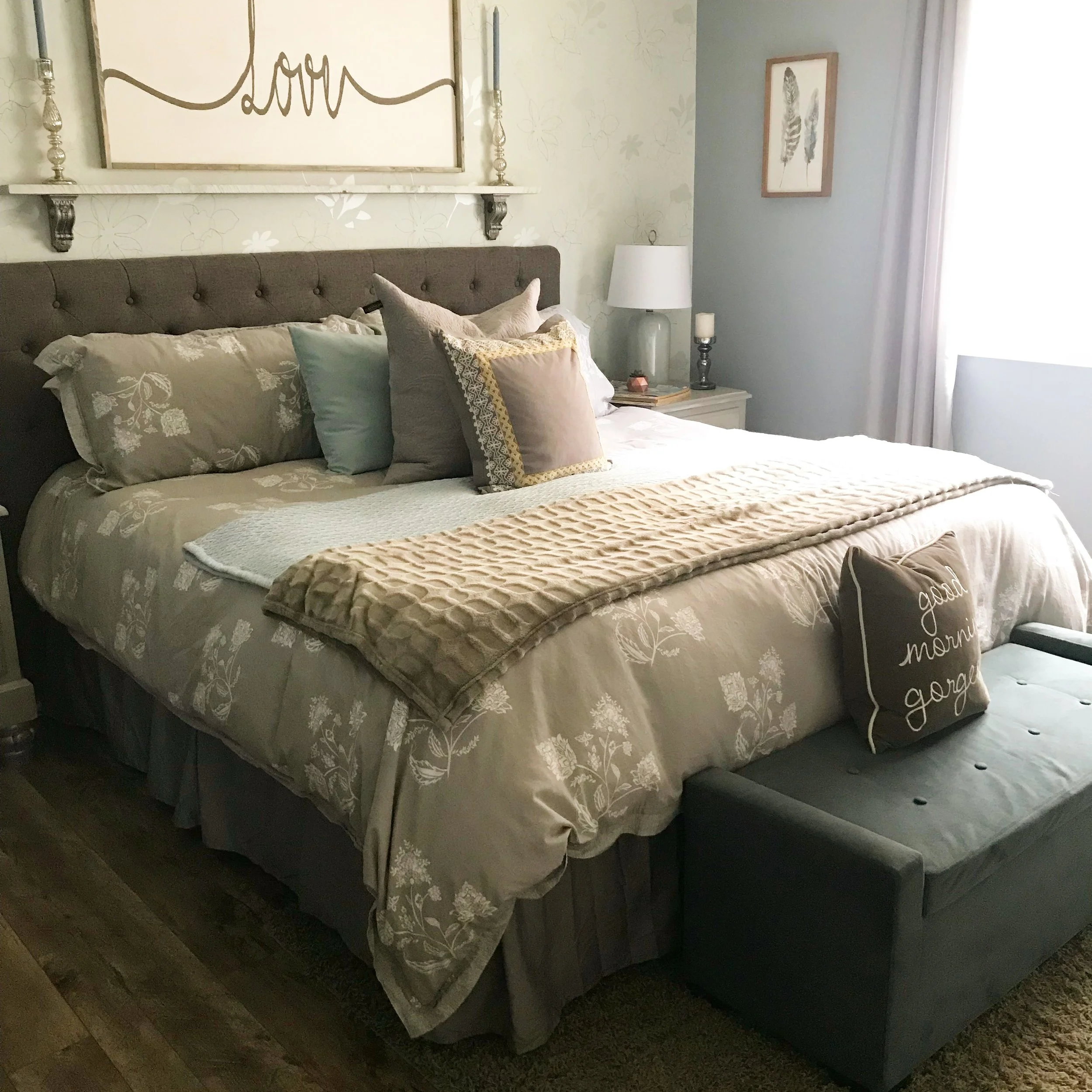 You all know that I make my bed every damn day right? I know this to be true because any time I share a picture of our master bedroom it’s one of the most popular comments I get! Call me cray but I can’t start my day with an unmade bed. I’ve always made my kids do the same...even hubby makes the bed on the weekends if he’s the last one up and I give him props for always trying to arrange all the throw pillows just right!