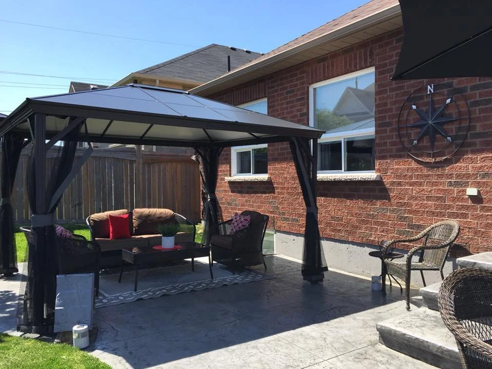 We love our gazebo which we leave up all year long. It's made by Sojag and came from Costco