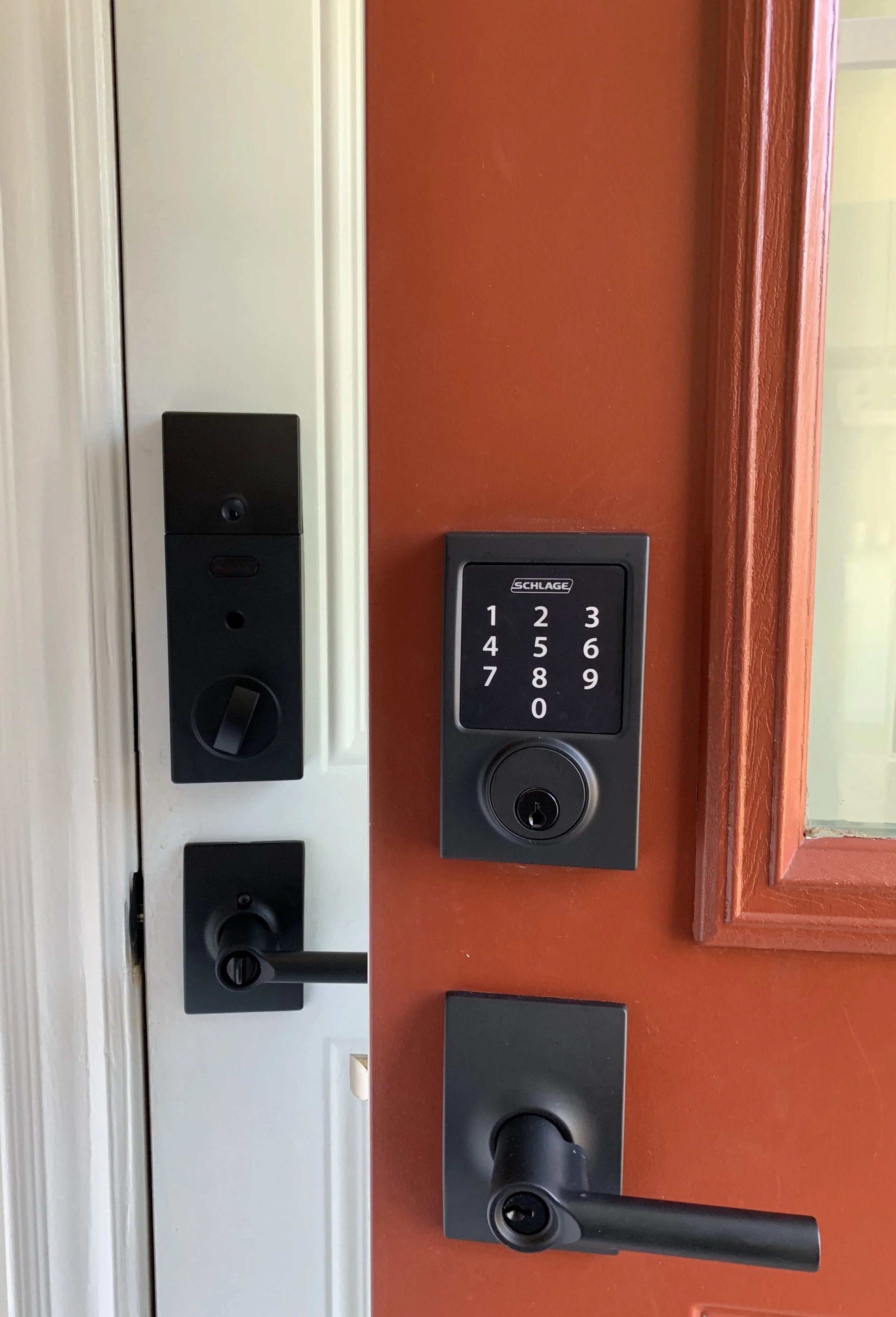 Thanks to our friends at Schlage Canada our new home is now outfitted with three beautiful Schlage Connect Smart Locks…. in matte black no less. Can I just say that beyond their functionality, they look stunning against our red exterior doors.