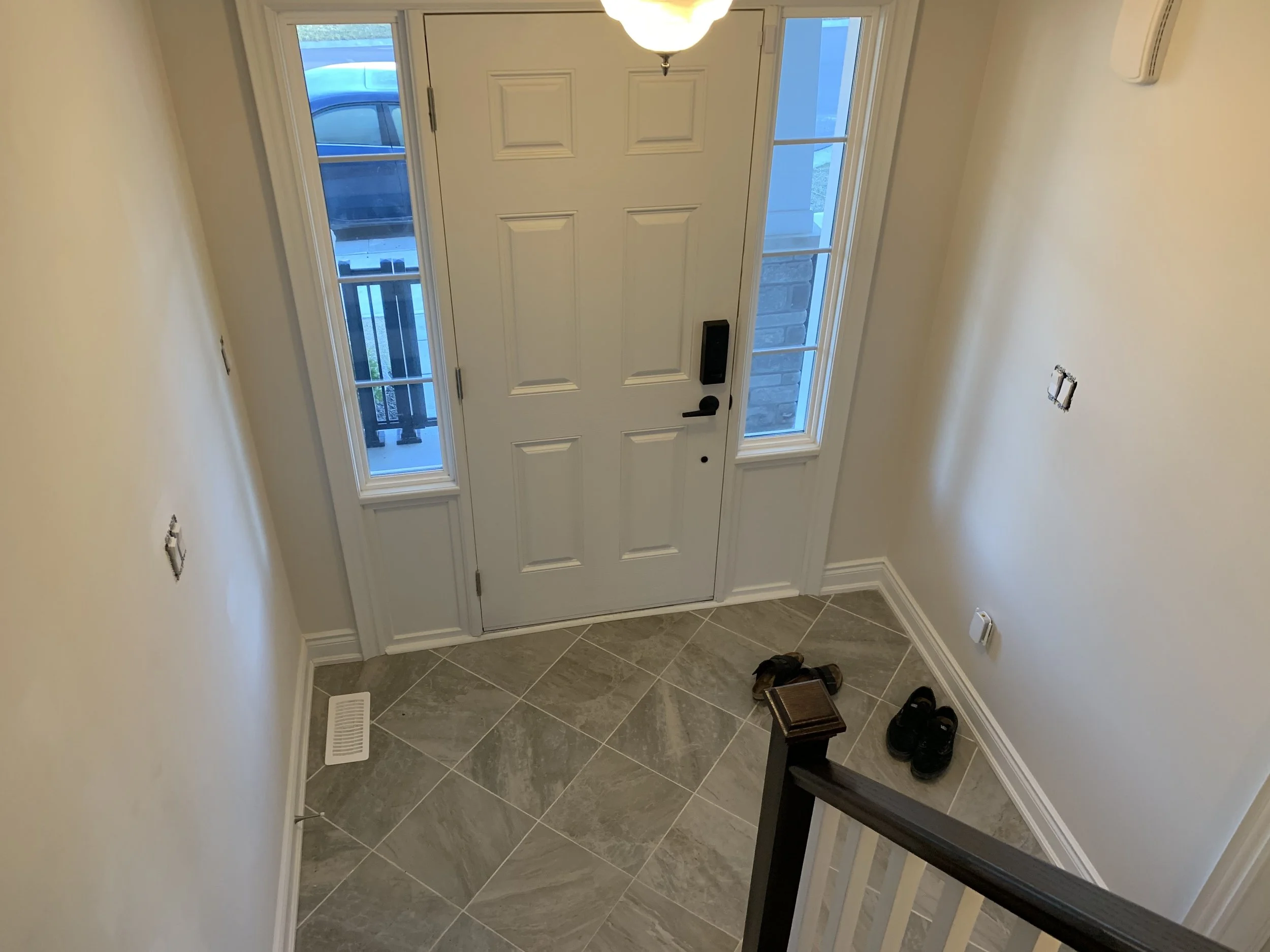 Our entryway flows through to the main area of the house making it somewhat difficult to transition from one colour to the next. We have used BEHR MARQUEE® “Off White” through much of the main floor, including the hallway leading to our entryway. I decided to make the transition from light to dark on the main entrance wall and continue it up the stairs into the loft.