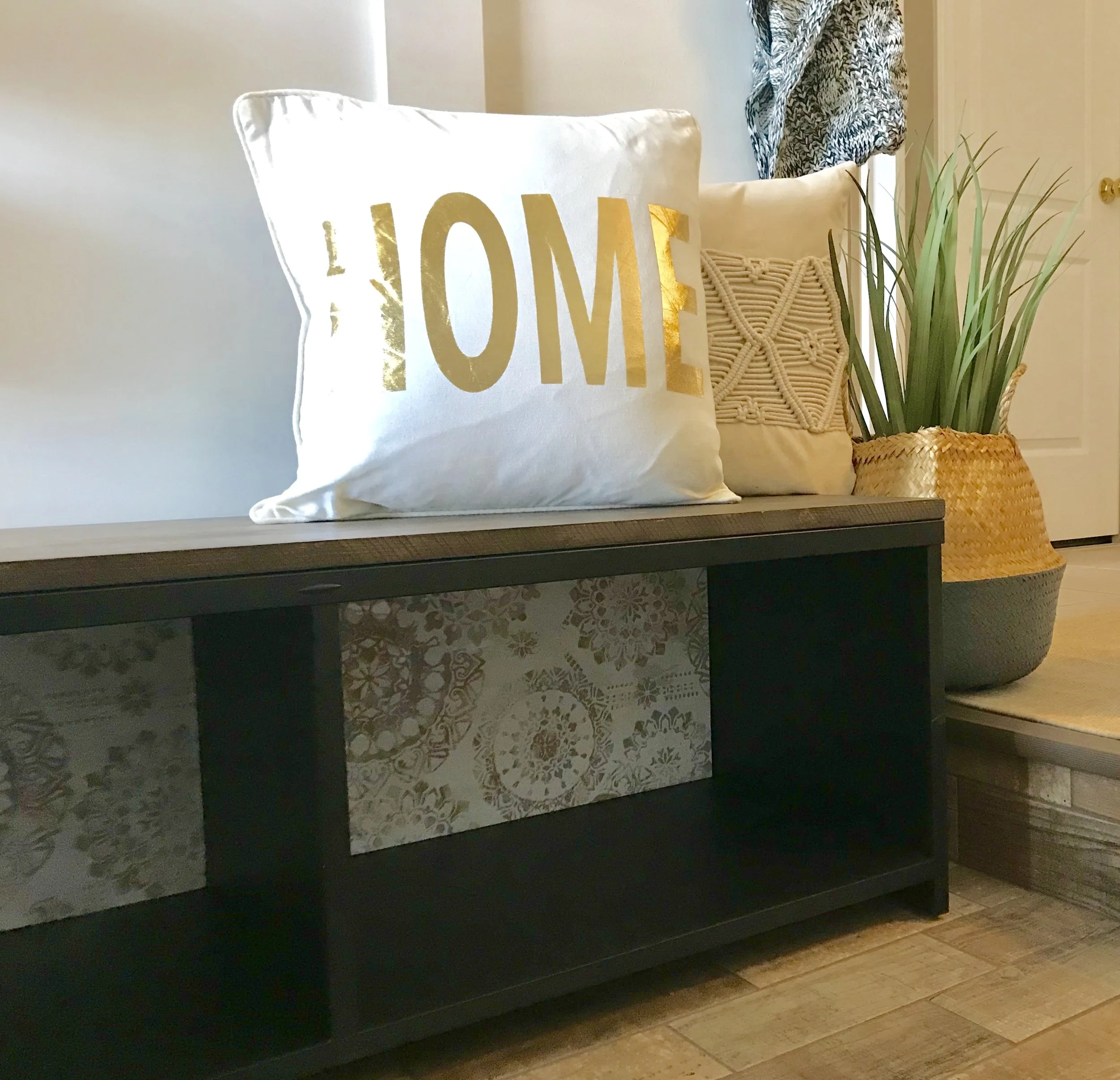 We had this odd cubby in our entryway way at our last house and added the Bohemian Wallpaper