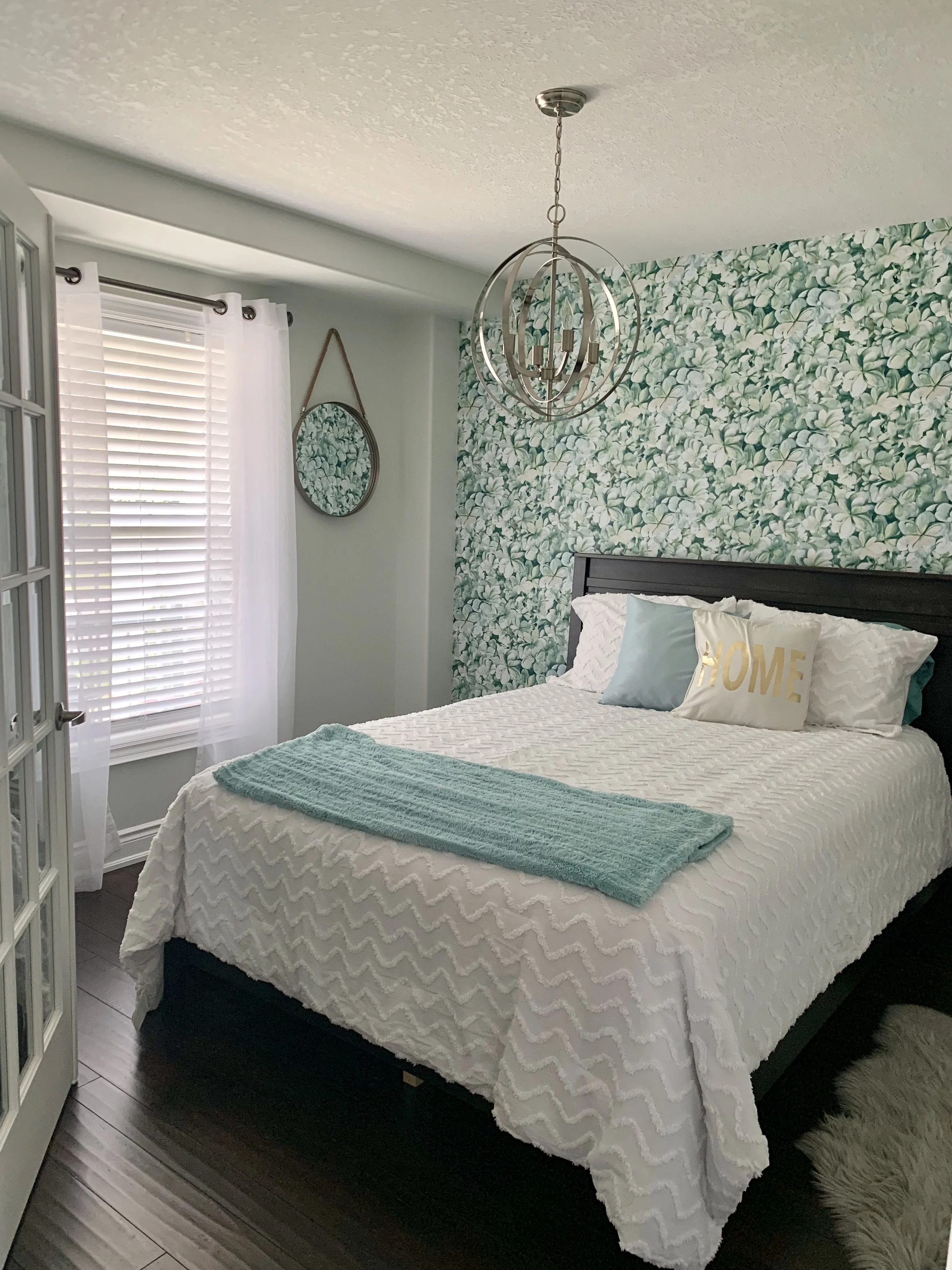 All of that changed for me when I was first introduced to PEEL AND STICK WALLPAPER by RoomMates Decor, it was a game changer and upped my home decor game big time! The first time we used it was in a Reno Challenge we participated in back in the fall of 2018 and that was where we worked out most of the kinks and learning curves.