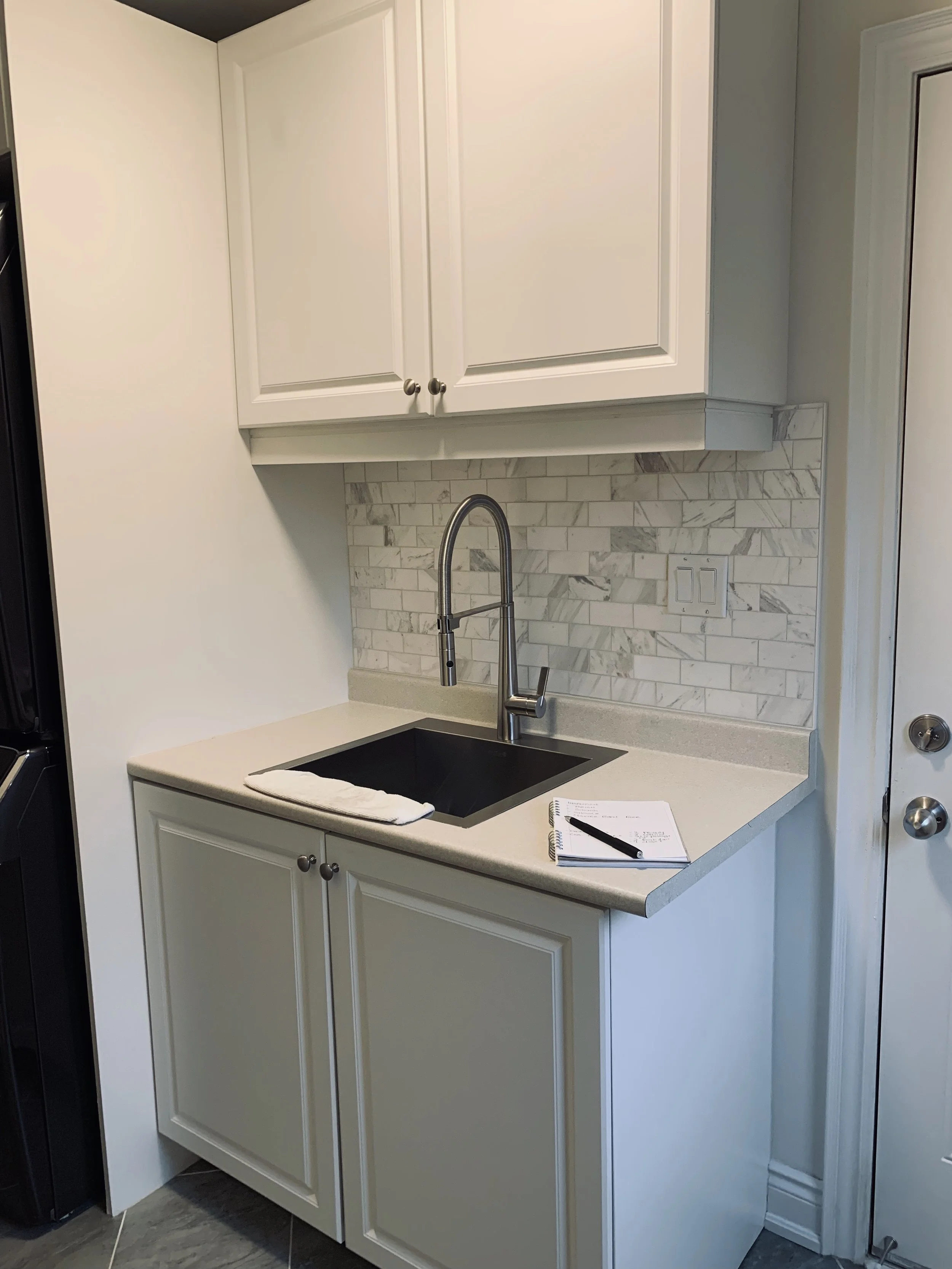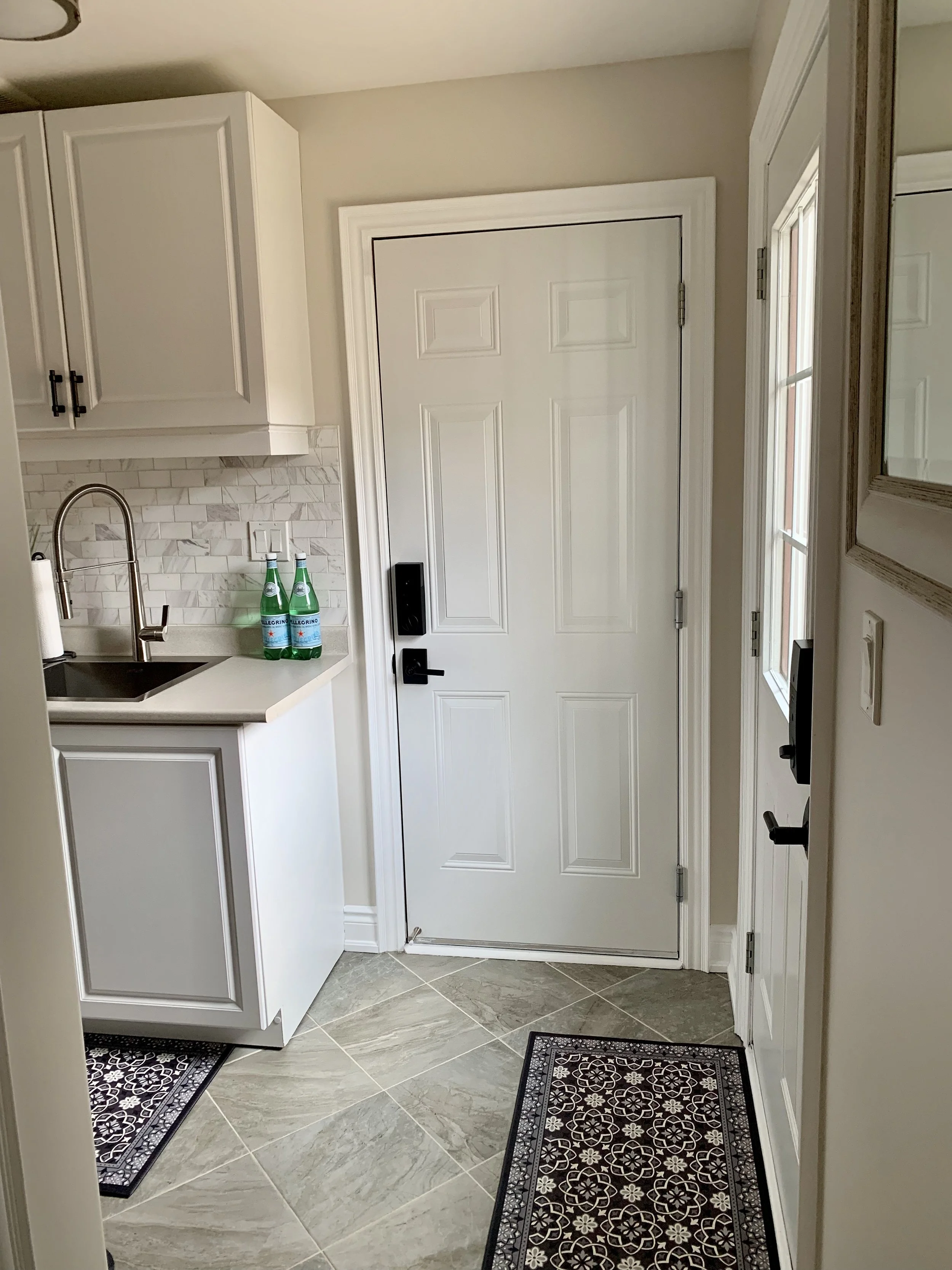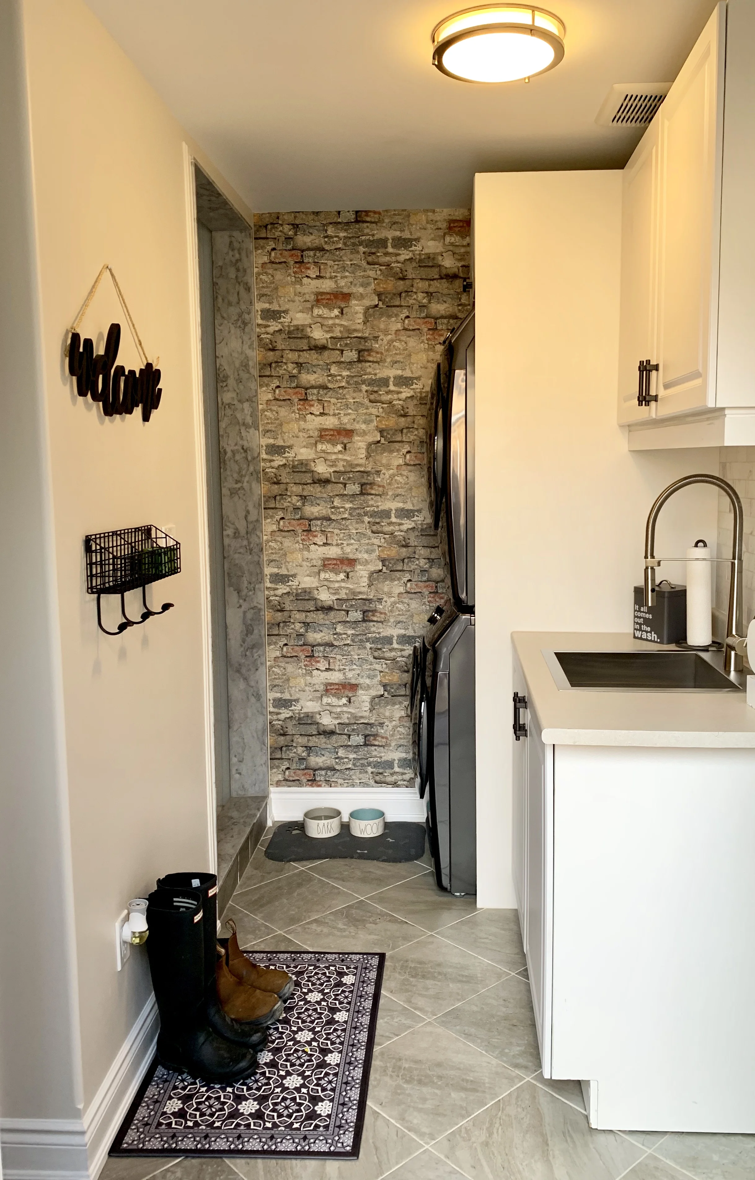 Because the main floor of our new home is so open, we chose to continue with BEHR MARQUEE® “Off White”(PPU-73) back into the combination mudroom/laundry room which flows off the kitchen. There is a lack of lighting in this area so it kept the space light and bright. Here are the before and after photos:
