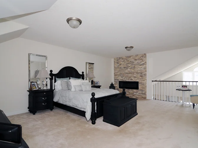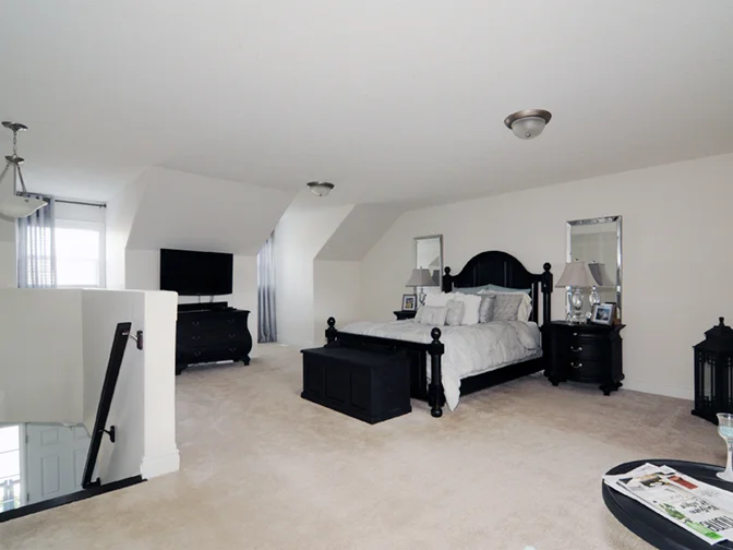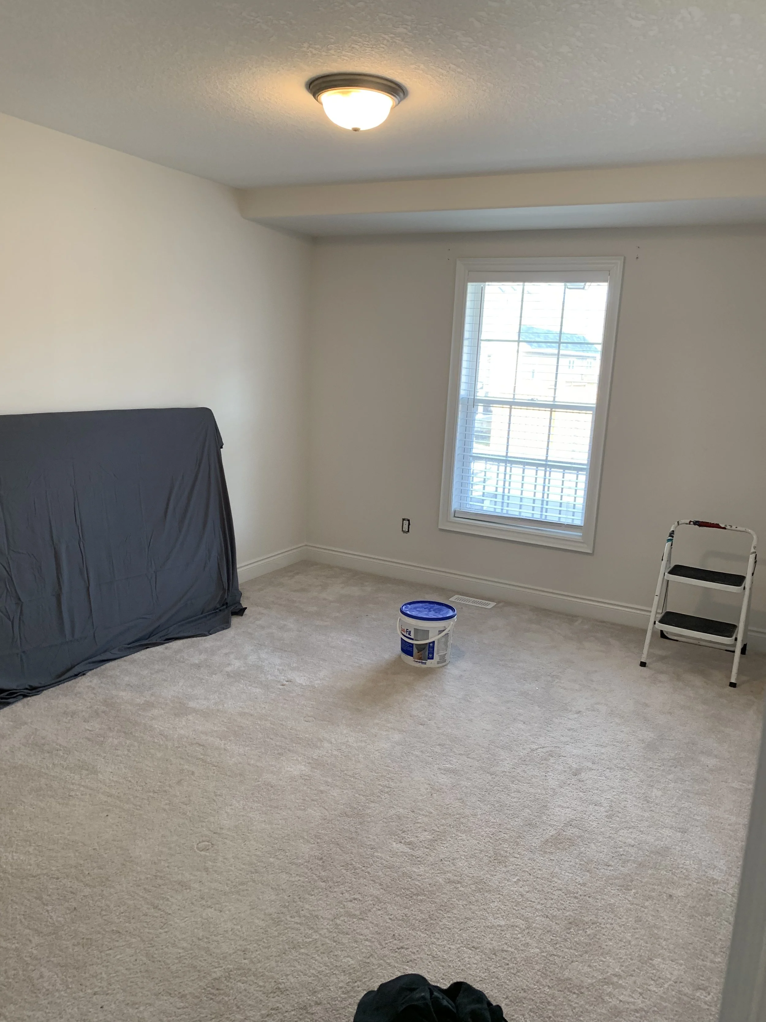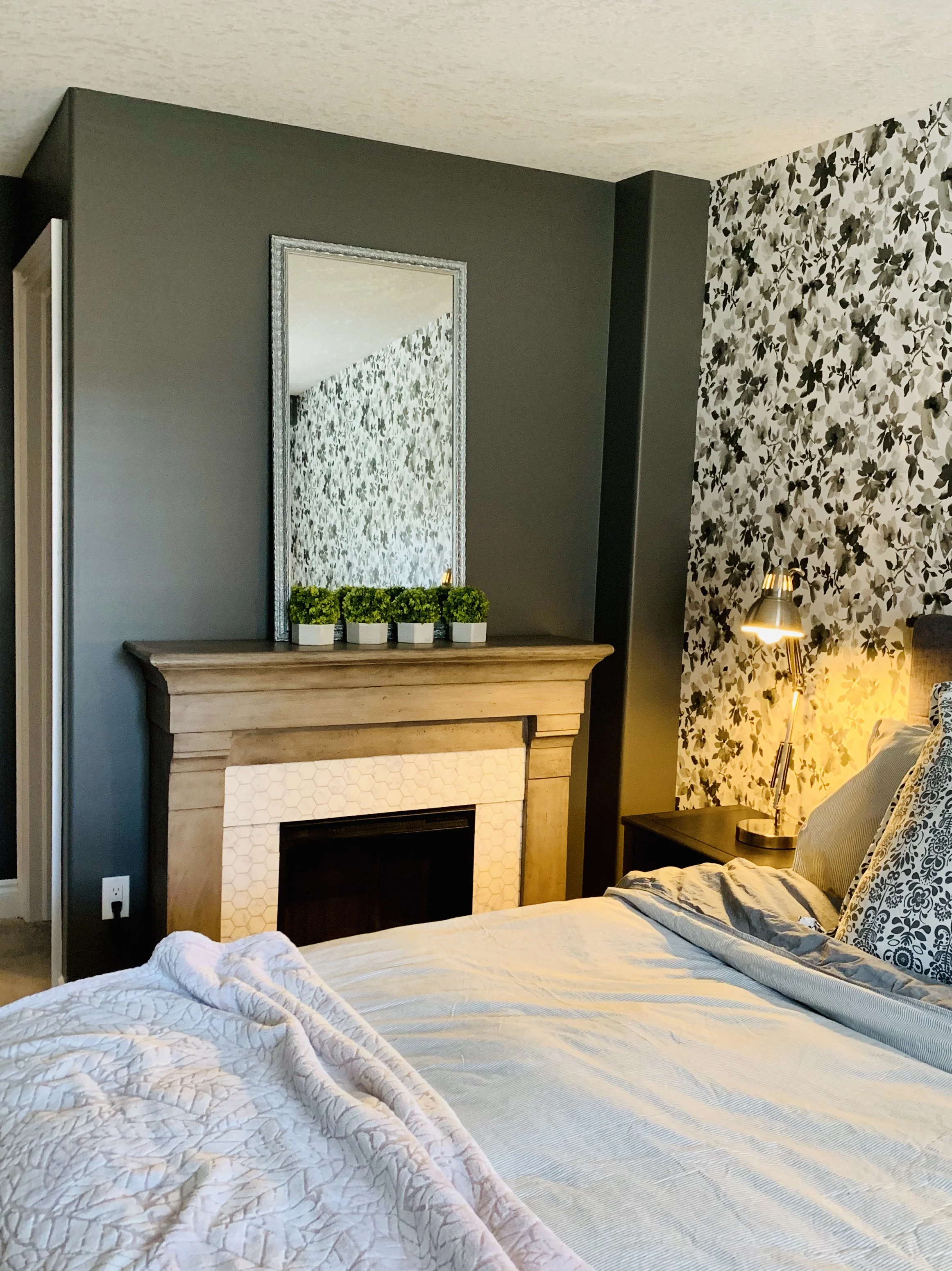 On our main floor we have the master and guest bedrooms. Both of these rooms were still the original “builder beige” and were ready for some colour. For our master bedroom we chose BEHR MARQUEE® “Mined Coal” (PPU18-18) with the same “Ultra Pure White on the trim. Here are the before and afters: