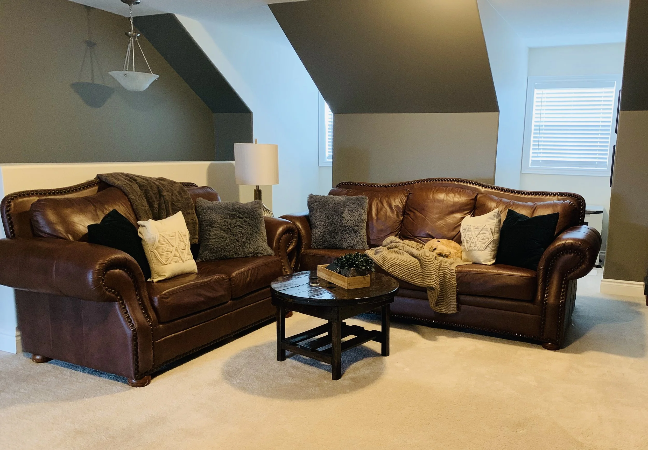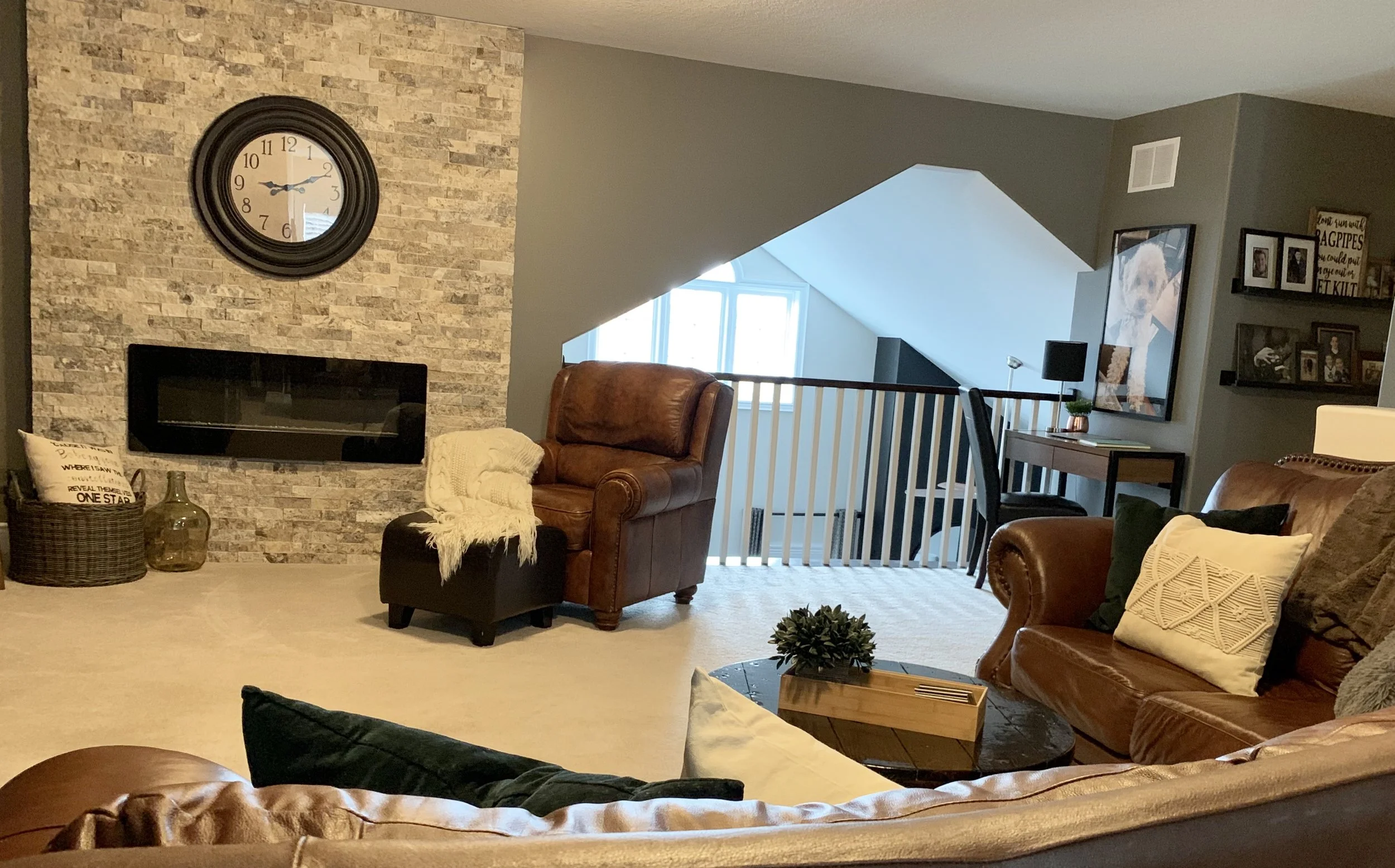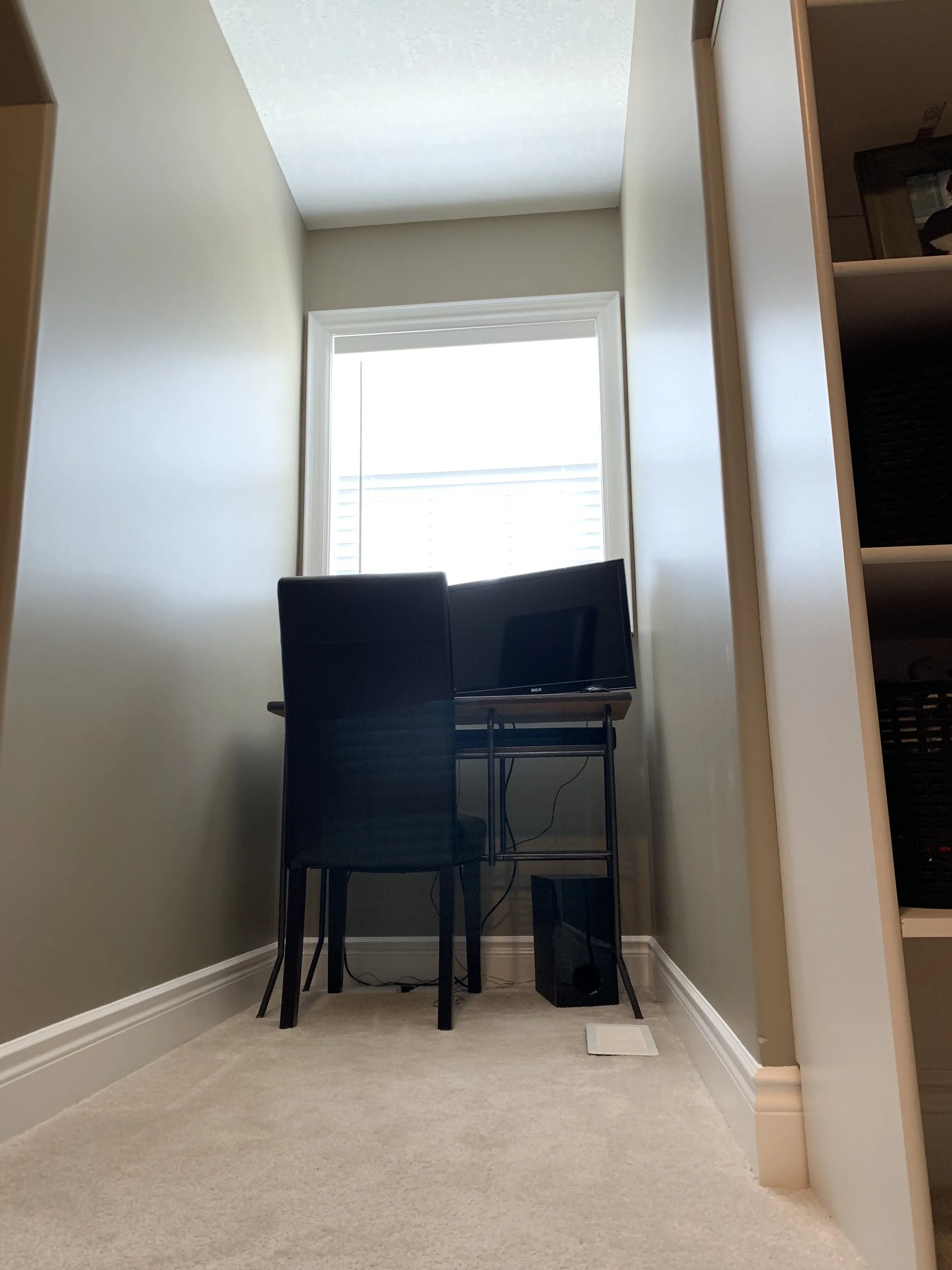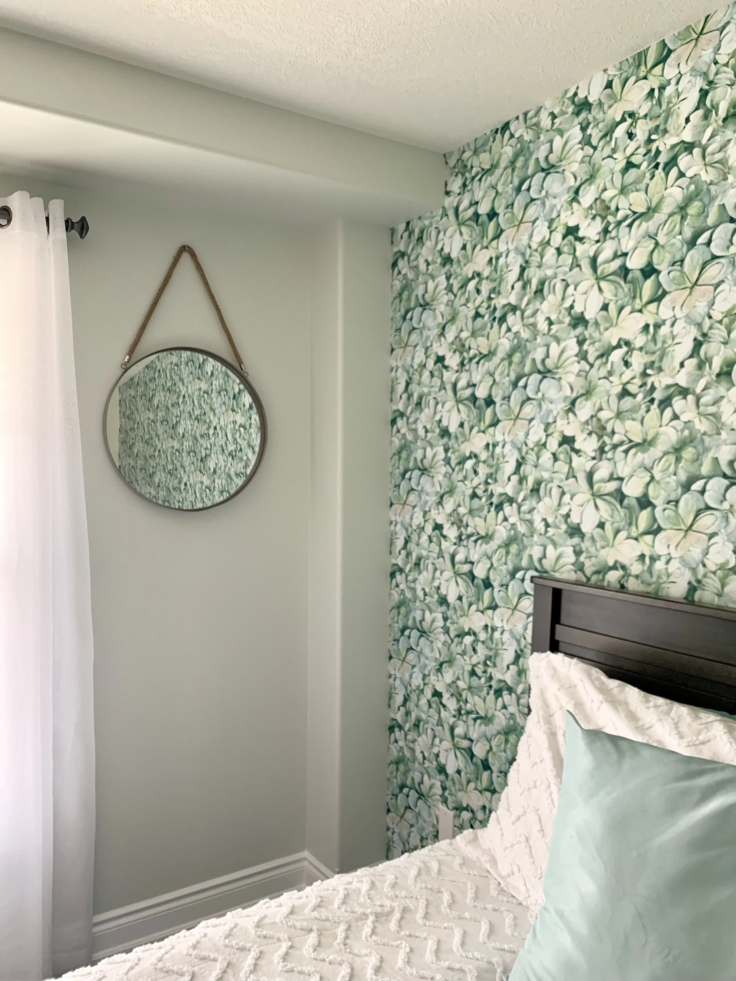 The original owners of this home used the loft space as a master bedroom and the third bedroom was used as a large custom walk in closet. As you saw previously, we are using the loft as a tv/media room and this walk in closet needed to be used as a third bedroom. We removed some of the closet components and transitioned it back into a bedroom for our teenage son. The colour we used in here was a compromise between him and us and is BEHR MARQUEE® “Roadside” (MQ2-52). This bedroom came together better than we imagined when we began this project.