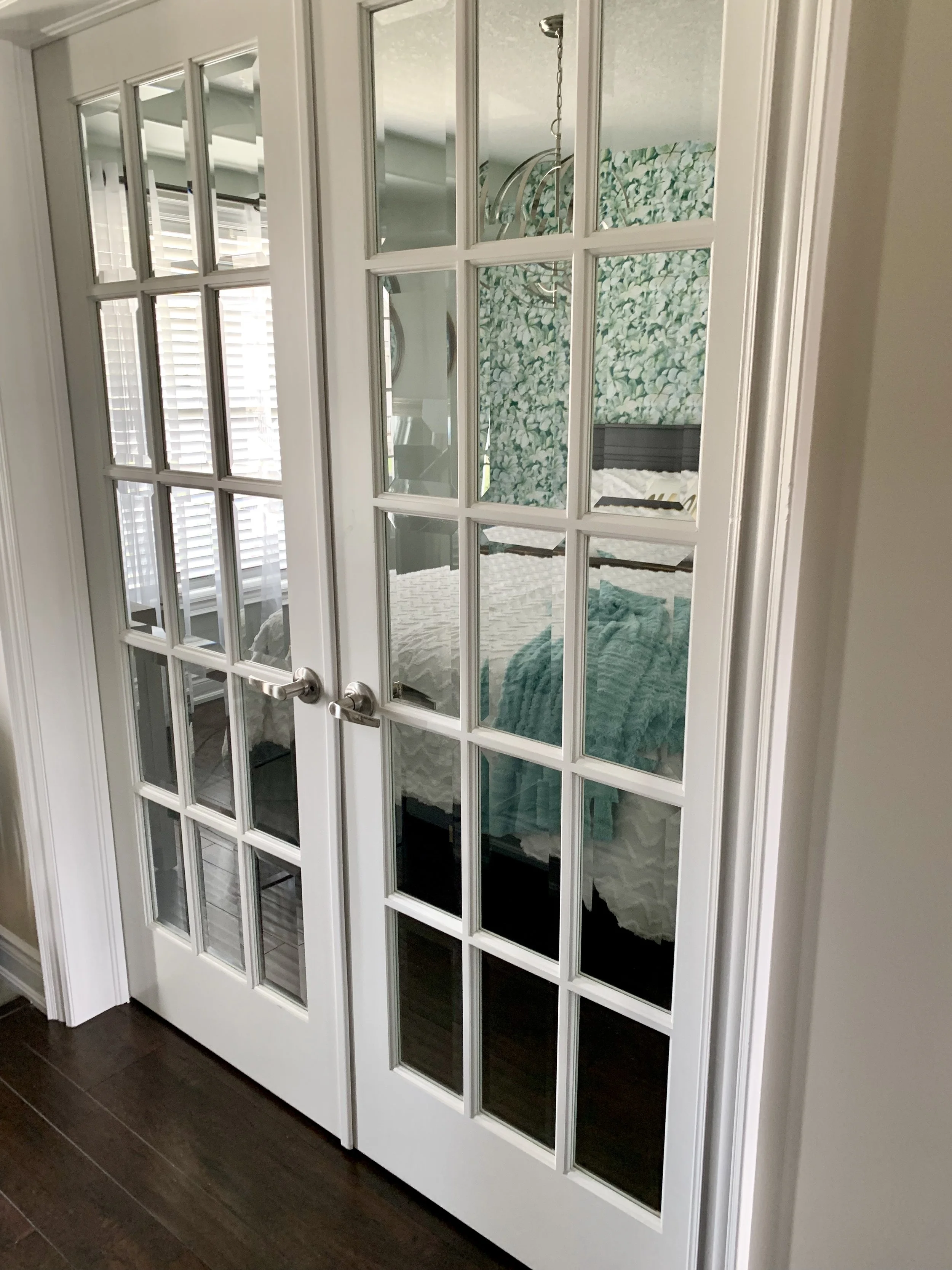 The guest room was being used as a home office when we bought the house. It is small and a bit awkward with the double closet doors and french doors so we decided to go light and airy, the complete opposite of the rest of the house, but it came together beautifully. The wall colour is BEHR MARQUEE® “Looking Glass” (MQ3-45) and the trim is “Ultra Pure White”. It is hard to believe this is even the same room.