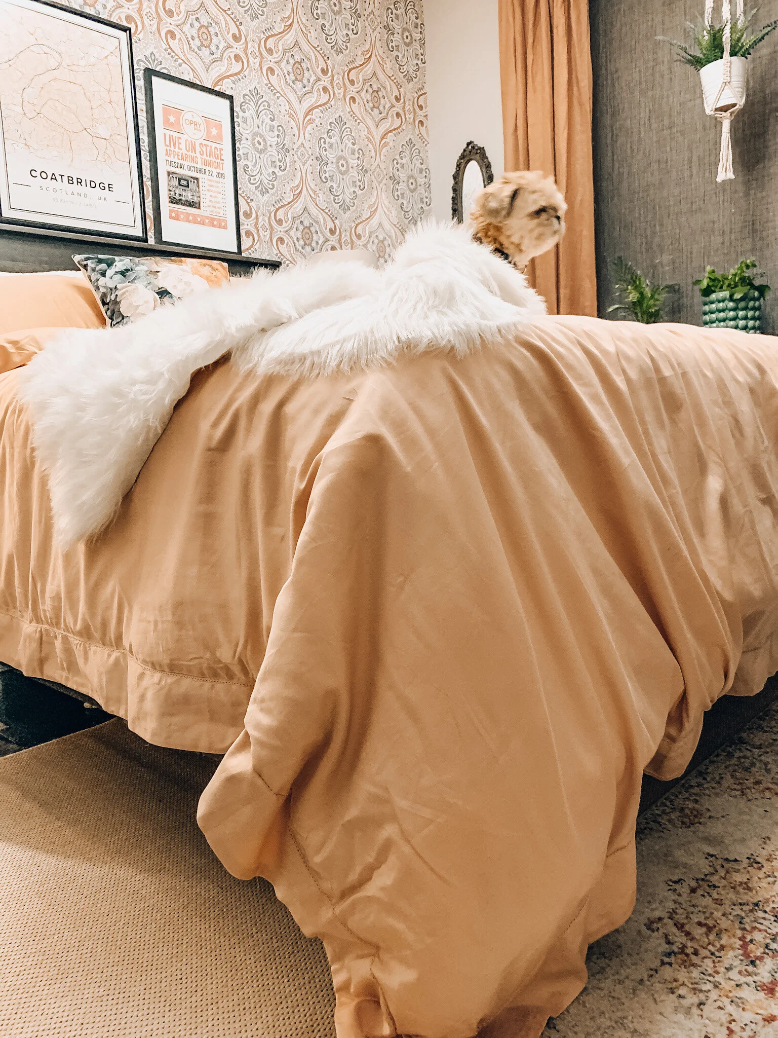 We love hosting guests in our home, in fact it’s one of the things we’ve missed the most in these crazy times we are living in. When we moved into our new home less than a year ago, one of the first rooms we decorated and set up was our guest room, we had high hopes!. Wallpaper and curtains were hung, wall art and plants were added, new door hardware and now, beautiful new bedding thanks fo our friends at Crown Goose.