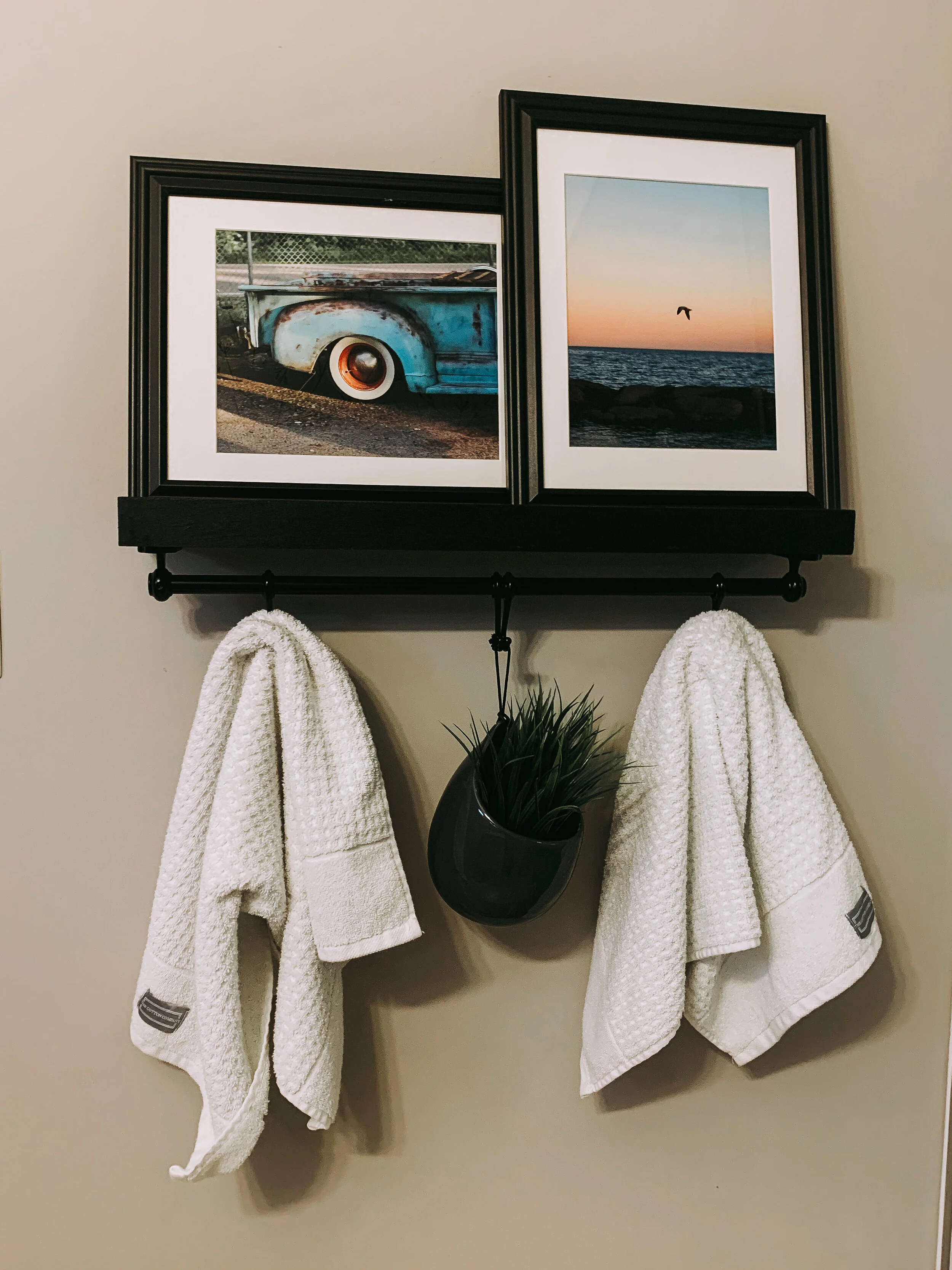 DIY an existing picture ledge/Fintorp rail from Ikea into a towel rack of sorts