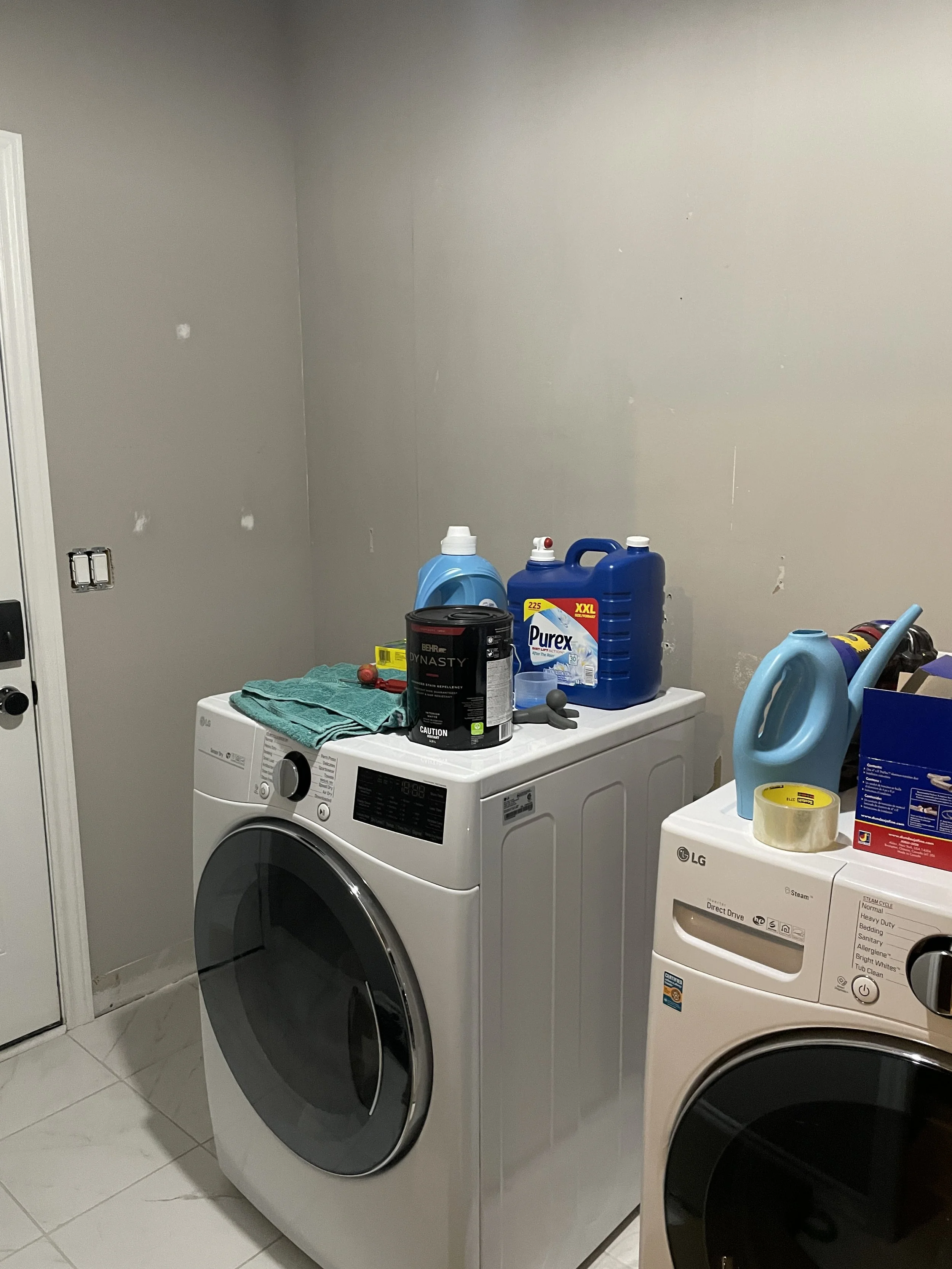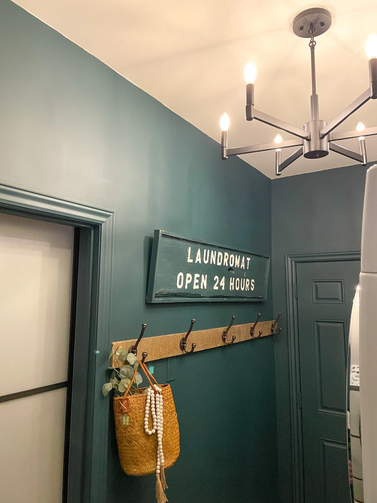 Next on the neverending list was installing our new light fixture. I knew we needed a fixture with multiple bulbs for this space! I was so tired of the room being a black hole! Thanks to our friends at Living Lighting Richmond Hill, we installed the Erzo 6 Light Chandelier by Kichler in our laundry room! Yep, you read that right, chandeliers in laundry rooms are a thing and you all need one! Not only is this room FINALLY lit, it adds the perfect touch of glam. We shared a little “how to install a light fixture” tutorial and it’s saved in a highlight reel on my Instagram page.