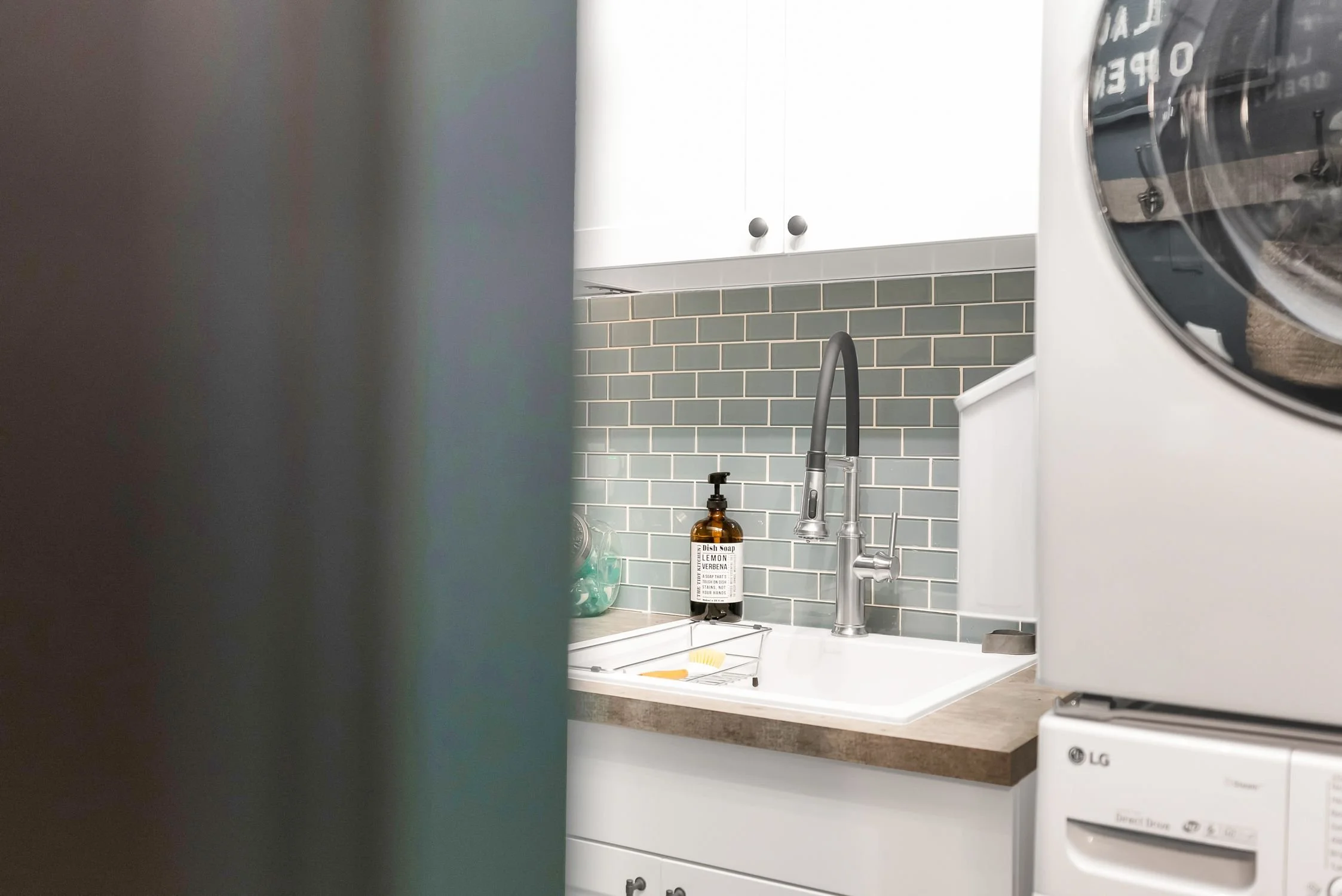 And now for the most difficult part of our reno - the plumbing. We always save the worst for last over here! We do not excel at plumbing, but thankfully my husband NEVER gives up. We added a Blanco Unit to our laundry room which included the Blanco Liven Laundry Sink in white, the Blanco Empressa Semi-Pro Faucet as well as some fun accessories. The installation process included cutting a precise hole for the sink, which we did using the provided template, easy to follow instructions and our new cordless jig saw. This was a bit stressful because you only get one shot. We measured and remeasured and remeasured some more! It paid off because the sink fit like a glove. The drain kit was easy to install, as was the faucet. The plumbing, not so much. But a couple of trips to Home Depot, a couple of false starts, and it’s all perfect! No leaks! Cheers to Mr. Uncluttered House, he gets all the credit for this part of the renovation.