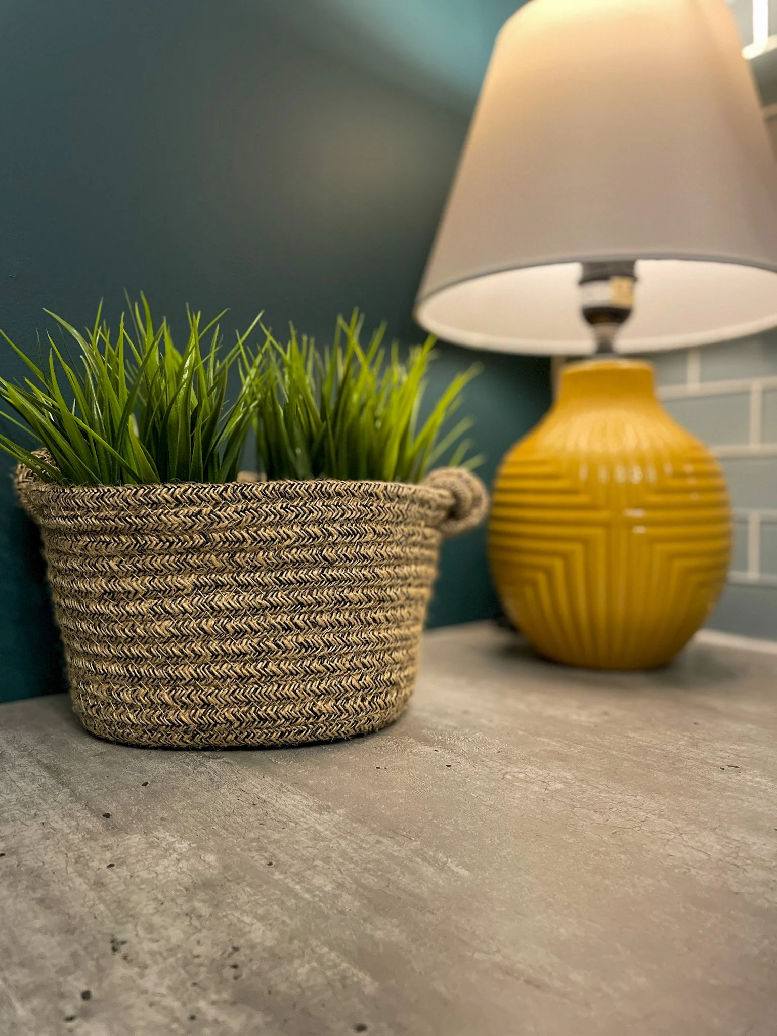 These rope baskets featured in the Home Depot Look Book were the perfect edition for both decor and storage. Especially when we get the closet fully converted to a linen closet.