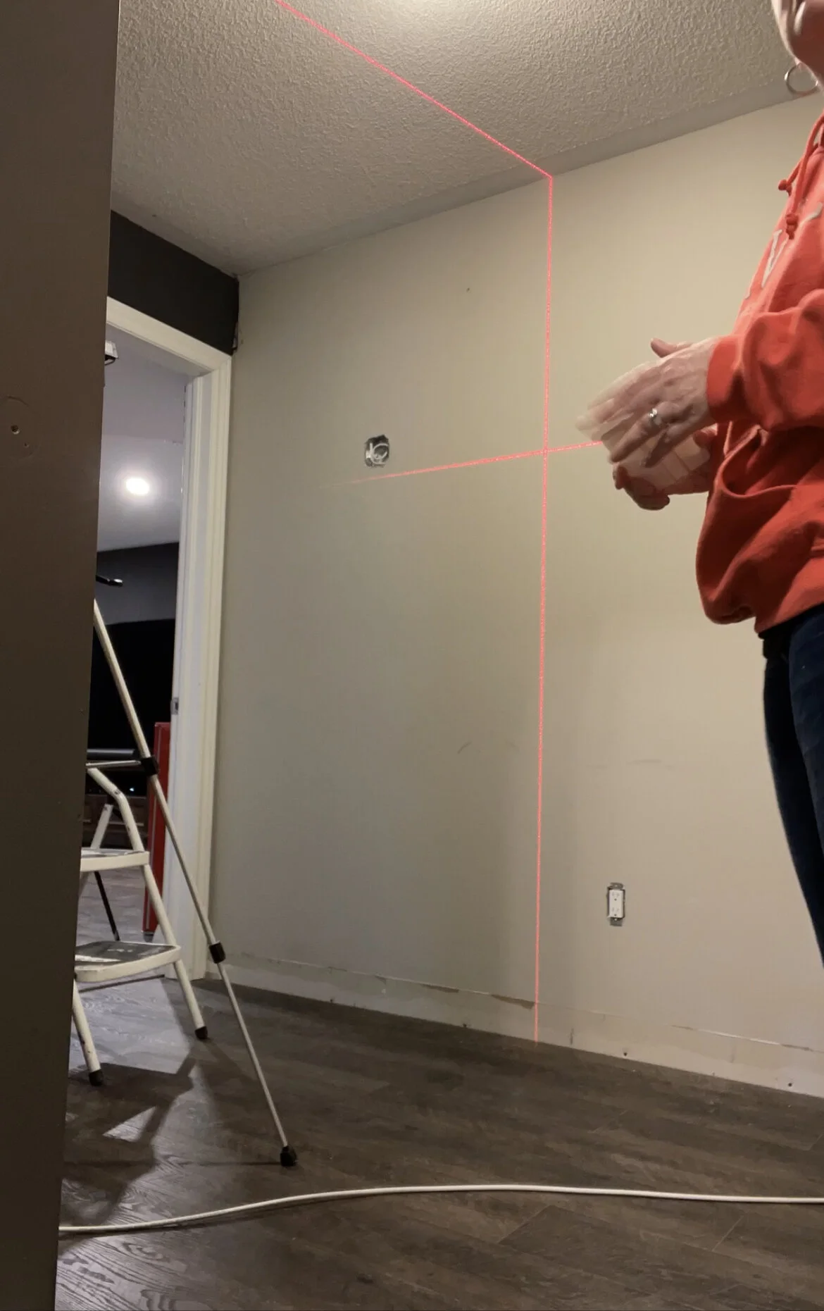 The first thing we did was use a laser level to ensure our first of two pieces was level and square on our not so square wall. The mural pieces are BIG and install is definitely a two person job…my hubby was thrilled as you can imagine haha! If you check out my highlight reel for this One Room Challenge project over on Instagram you can see a time-lapse video of the entire install!