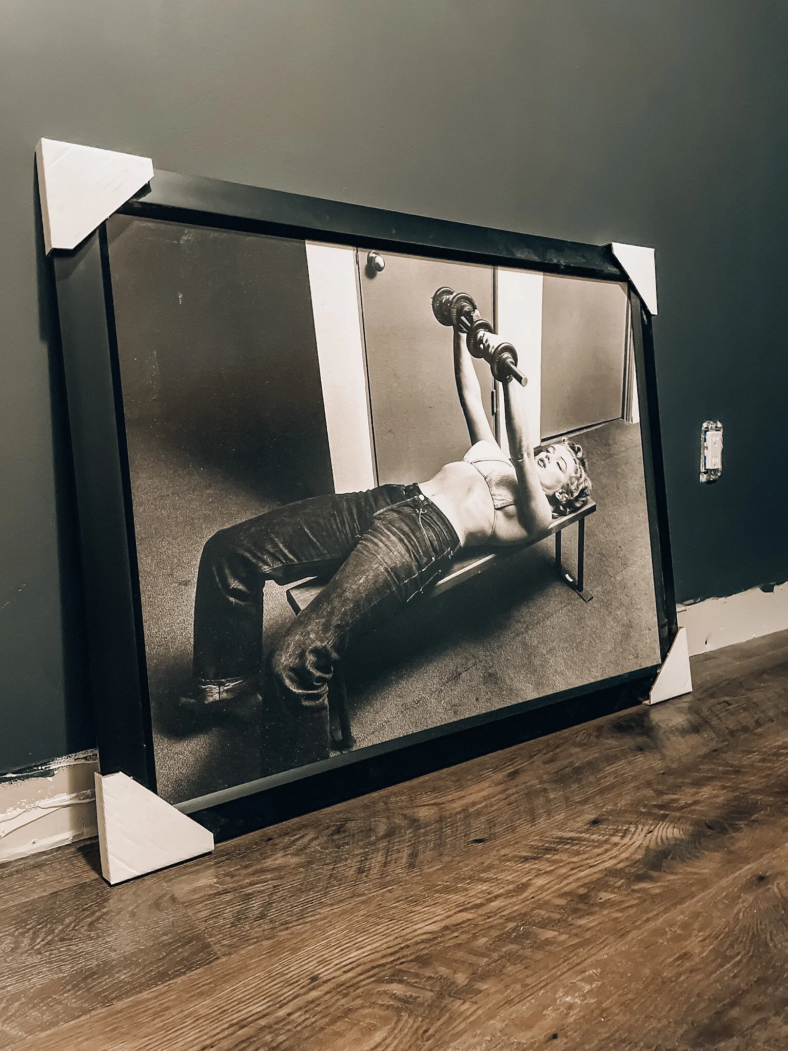 I also finally hung the cute mirror from Jervy. I decided to remove the brass hook and spray paint it black so it would blend on the black wall and it’s absolute perfection. I hung it with a Monkey Hook also painted black…..and the gorgeous barn door by Renin easily glides in front of it!