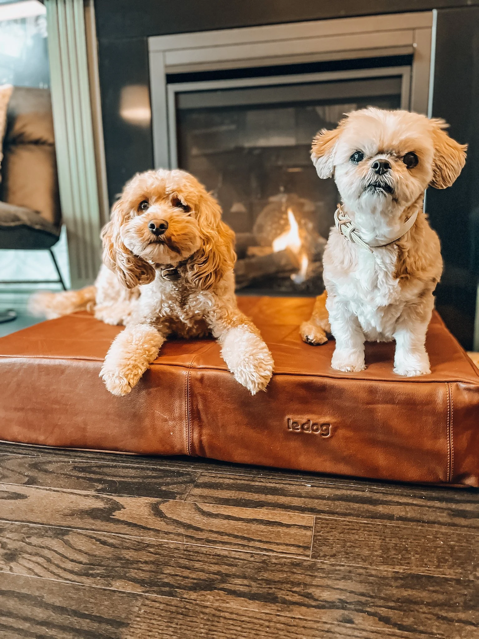 Le Dog is a small Canadian, women owned and operated business in beautiful British Columbia who happen to know a thing or two about quality pet supplies, especially dog beds. Imagine our delight when we got our hands on one of their genuine leather dog beds for Archie and Lucy! That’s right folks, nothing but the best for our pooches!