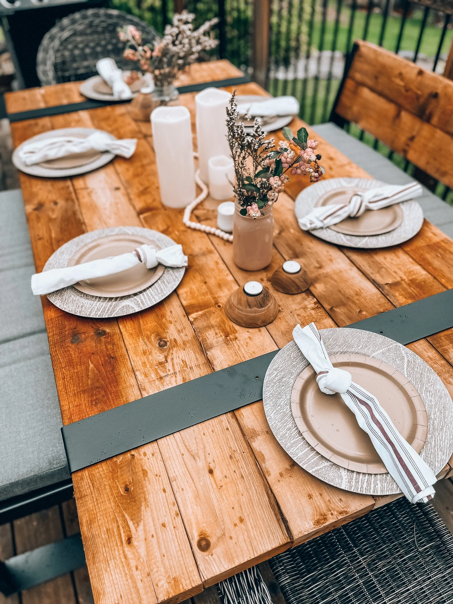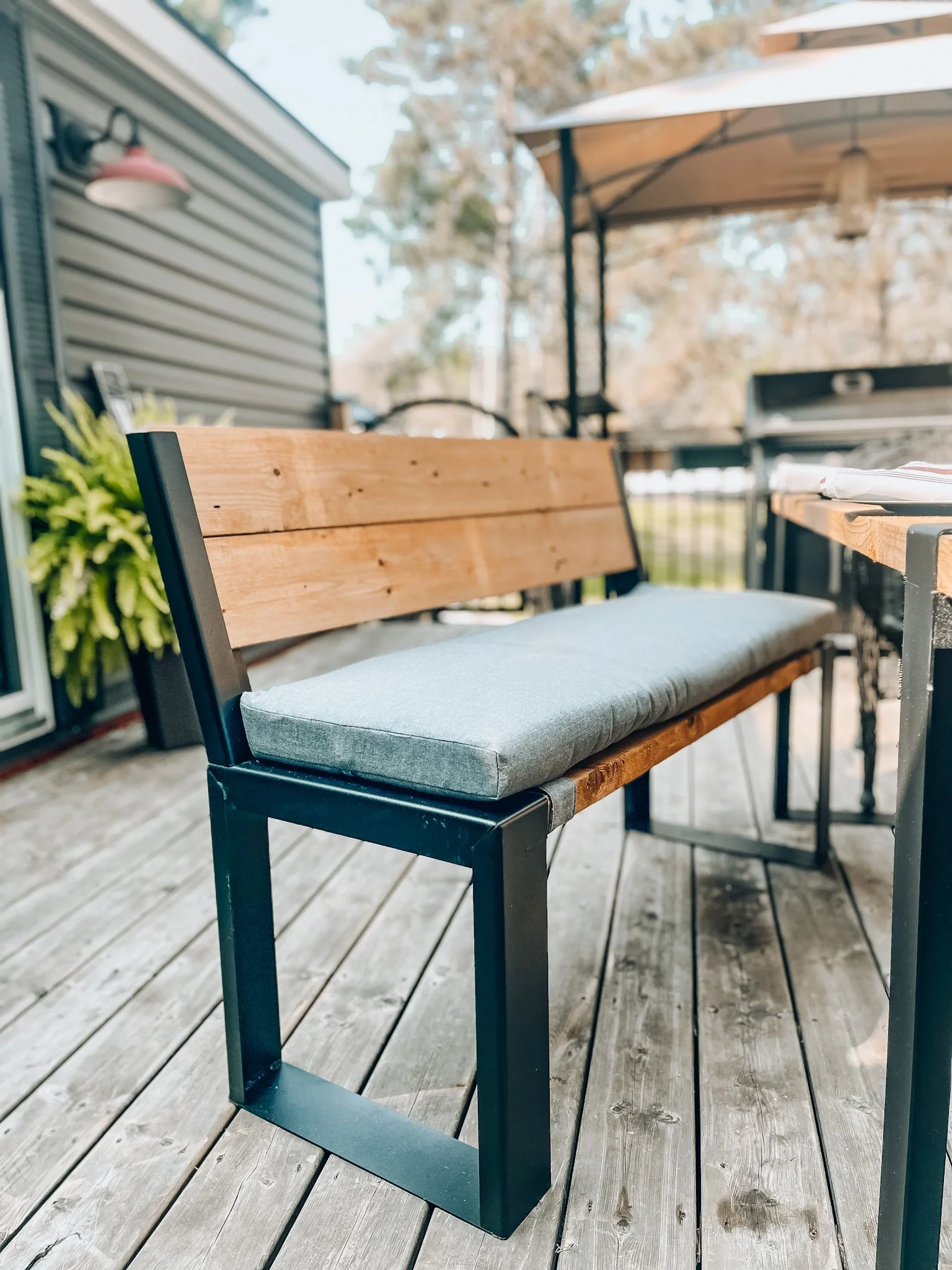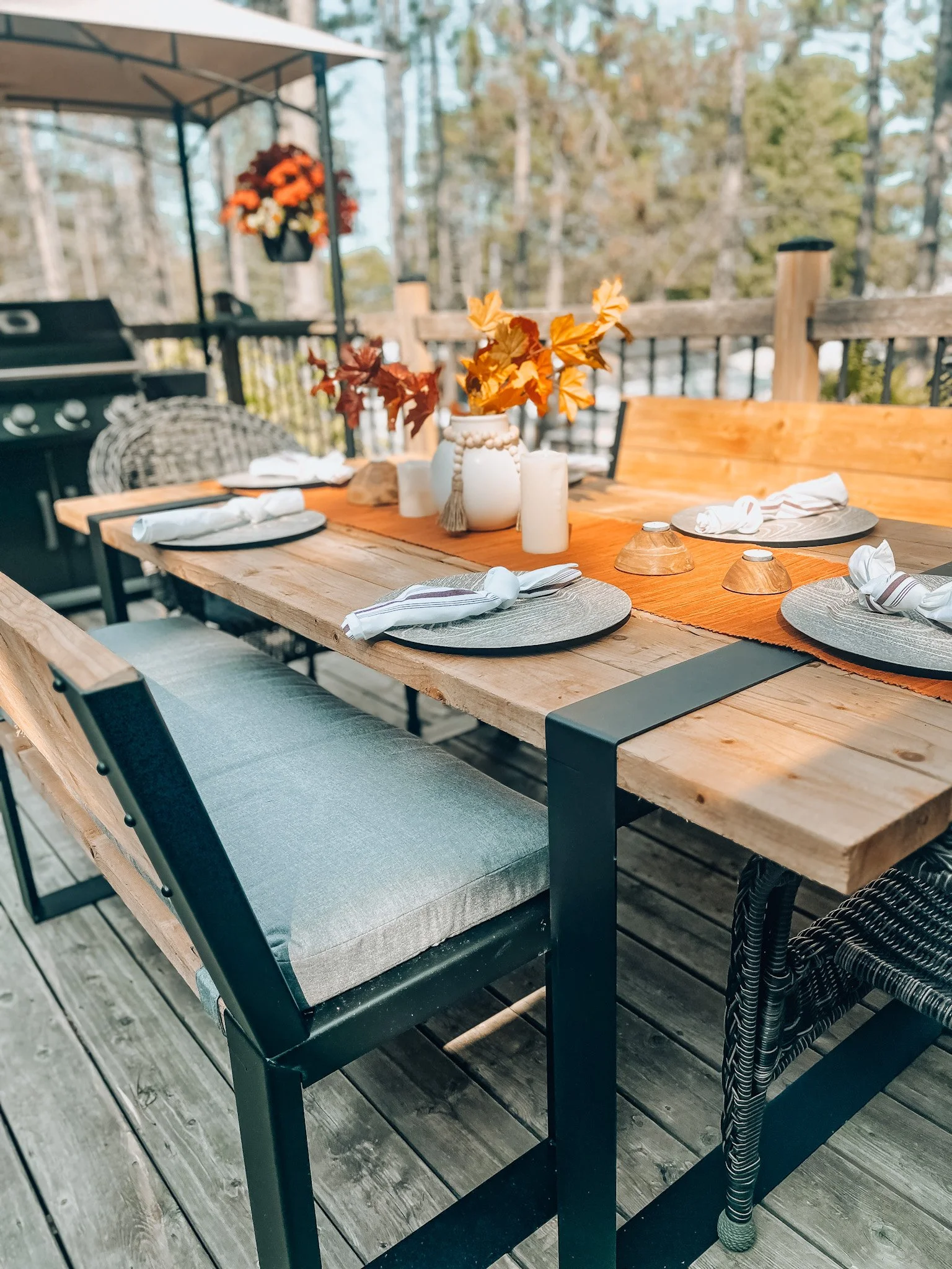 We loved using the Toja Grid system so much, we went on to build a Modern Muskoka Dining Table + Benches for our deck up at the lake. We chose to add backs to our benches for more comfortable seating as well as cushions. We LOVE this set so much, not only was it easy to build, it is absolutely beautiful and we love gathering around this table we built with our own hands, with family and friends, making new memories